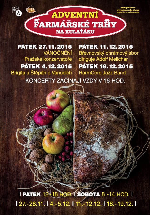 MČ Praha 6 Vás srdečně zve na páteční podvečerní adventní koncerty na farmářských trzích. V době adventní budou mimořádně otevřeny farmářské trhy také v pátek. Při té příležitosti Vám nabídneme nejenom občerstvení pro tělo, ale také zážitek pro duši...