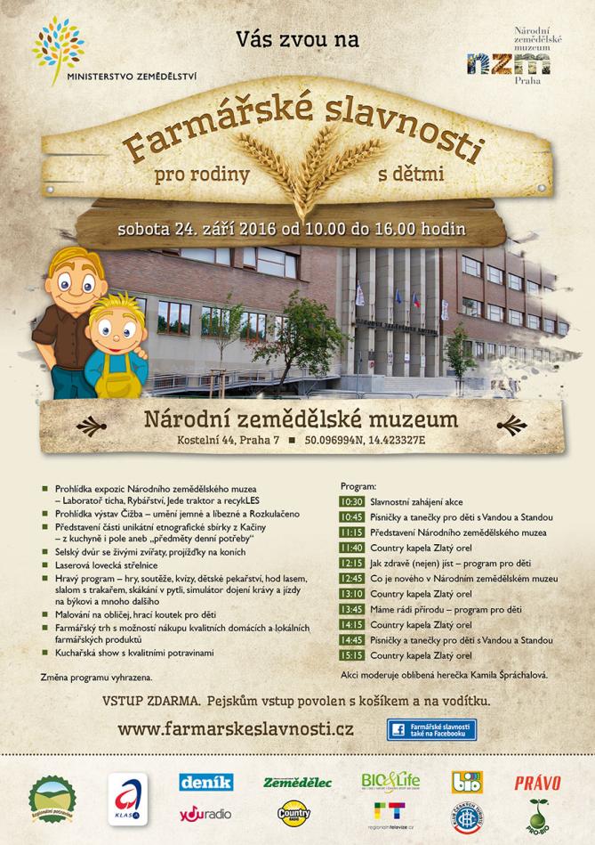 Během léta představil projekt Ministerstva zemědělství s názvem Farmářské slavnosti pro rodiny s dětmi veřejnosti již čtyři farmy v různých koutech České republiky. Návštěvníci se dozvěděli mnohé ze života českých zemědělců a poznali, co obnáší ekologické hospodaření. Poslední akce se ponese v mírně odlišném duchu než všechny předchozí. Bude se totiž konat v Národním zemědělském muzeu v Praze.