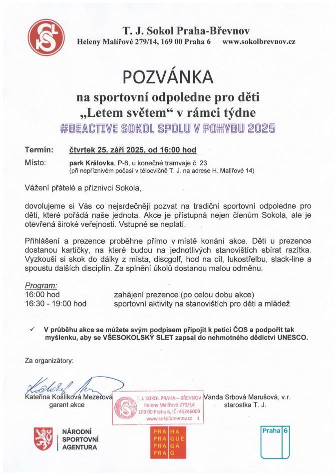 - Pořadatel: T. J. Sokol Praha-Břevnov