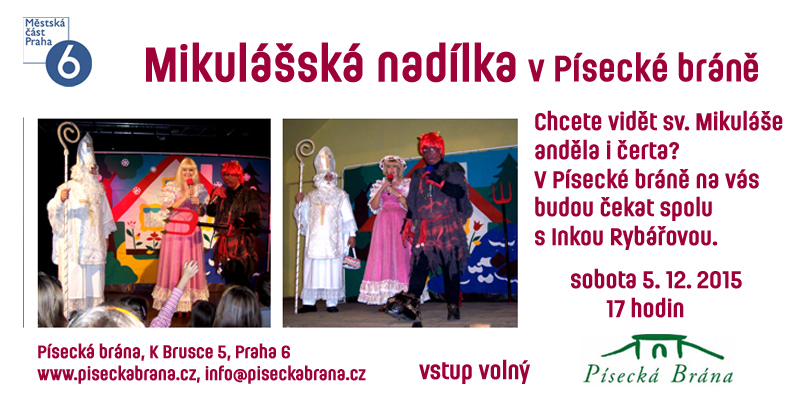 Srdečné pozvání na Mikulášskou nadílku v Písecké bráně nejen s mikulášem, andělem a čertem, ale i s Inkou Rybářovou.