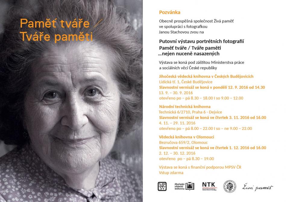 s fotografkou Janou Stachovou pořádá obecně prospěšná společnost Živá paměť, se koná