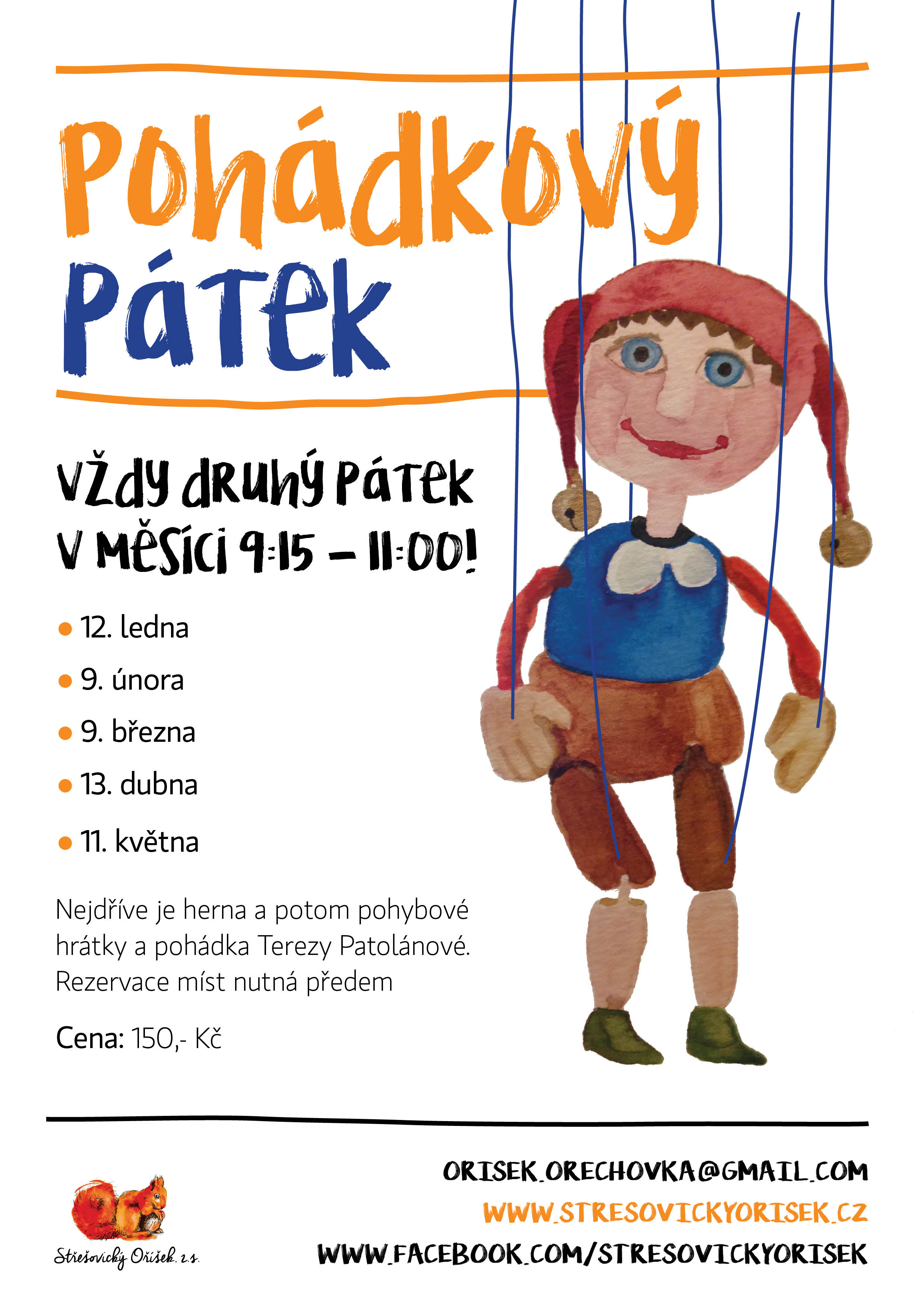 Místa prosím rezervujte vždy alespoň tři dny předem na orisek.orechovka@gmail.com.
