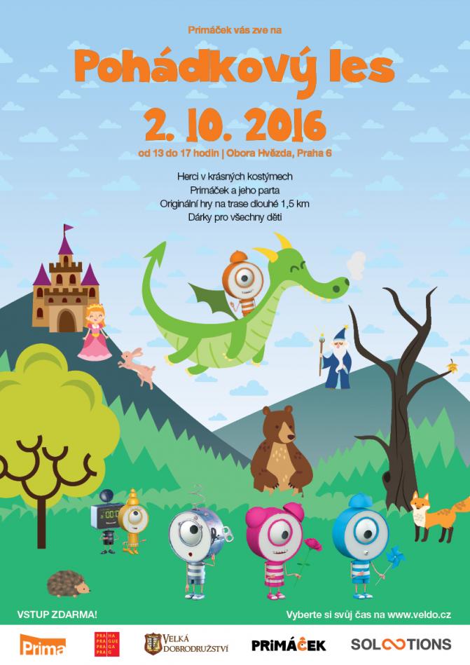 Vezměte je s sebou v neděli 2. října 2016 do Primáčkova Pohádkového lesa v oboře Hvězda v Praze 6. Magistrát hl. města Praha, FTV Prima ve spolupráci s agenturou Solootions a Společnost Velká dobrodružství pro vás chystají les plný strašidel, vodníků, draků a rusalek. Děti v něm budou plnit originální úkoly a na závěr se pobaví v Primáčkově herně. Dvoukilometrová trasa, která povede parkem, bude pro děti a rodiče otevřena od 13 do 17 hodin.