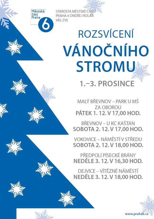 Starosta městské části Praha 6 Ondřej Kolář vás zve na rozsvícení vánočního stromu, které proběhne v sobotu 2. prosince na náměstí V středu ve Vokovicích.