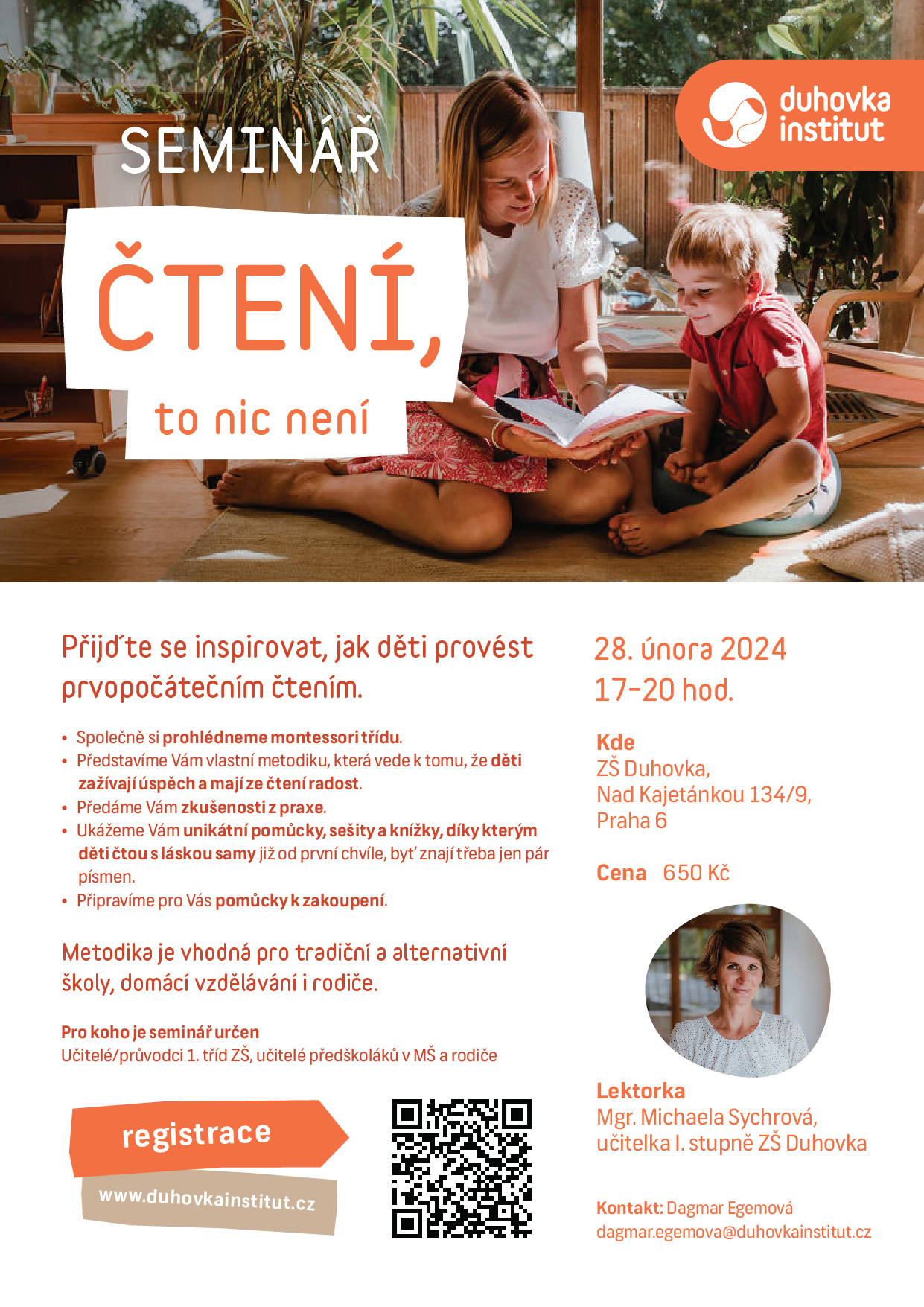 Seminářem Vás provede lektorka Mgr. Michaela Sychrová, učitelka I. stupně ZŠ Duhovka.
