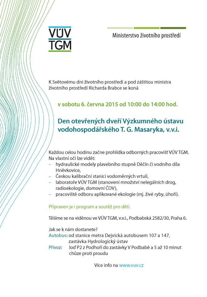 Těšíme se na viděnou ve VÚV TGM, v.v.i., Podbabská 2582/30, Praha 6.