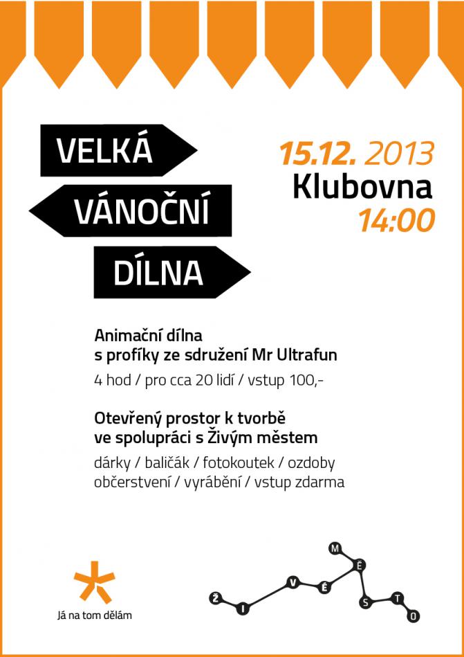 Občanské sdružení Živé město zve na Velkou vánoč í dílnu, kterou v neděli 15. 12. 2013 pořádá společně s uskupením Já na tom dělám v KC Klubovna (Generála Píky, Praha 6 - Dejvice).