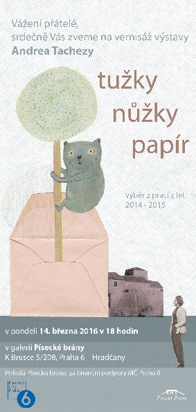 Zveme nejen děti a rodiče na výstavu Andrey Tachezy, která představí výběr svých prací z let 2014 - 2015. Zahájení proběhne v pondělí 14. 3. 2016 v 18 hodin.