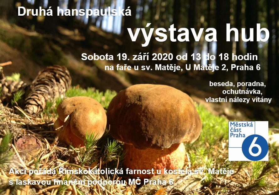 Srdečně vás zveme na výstavu hub, která se koná v sobotu 19. 9. od 13.00 do 18.00 hodin na faře u sv. Matěje, U Matěje 2, Praha 6 – Dejvice. Vstup volný.
