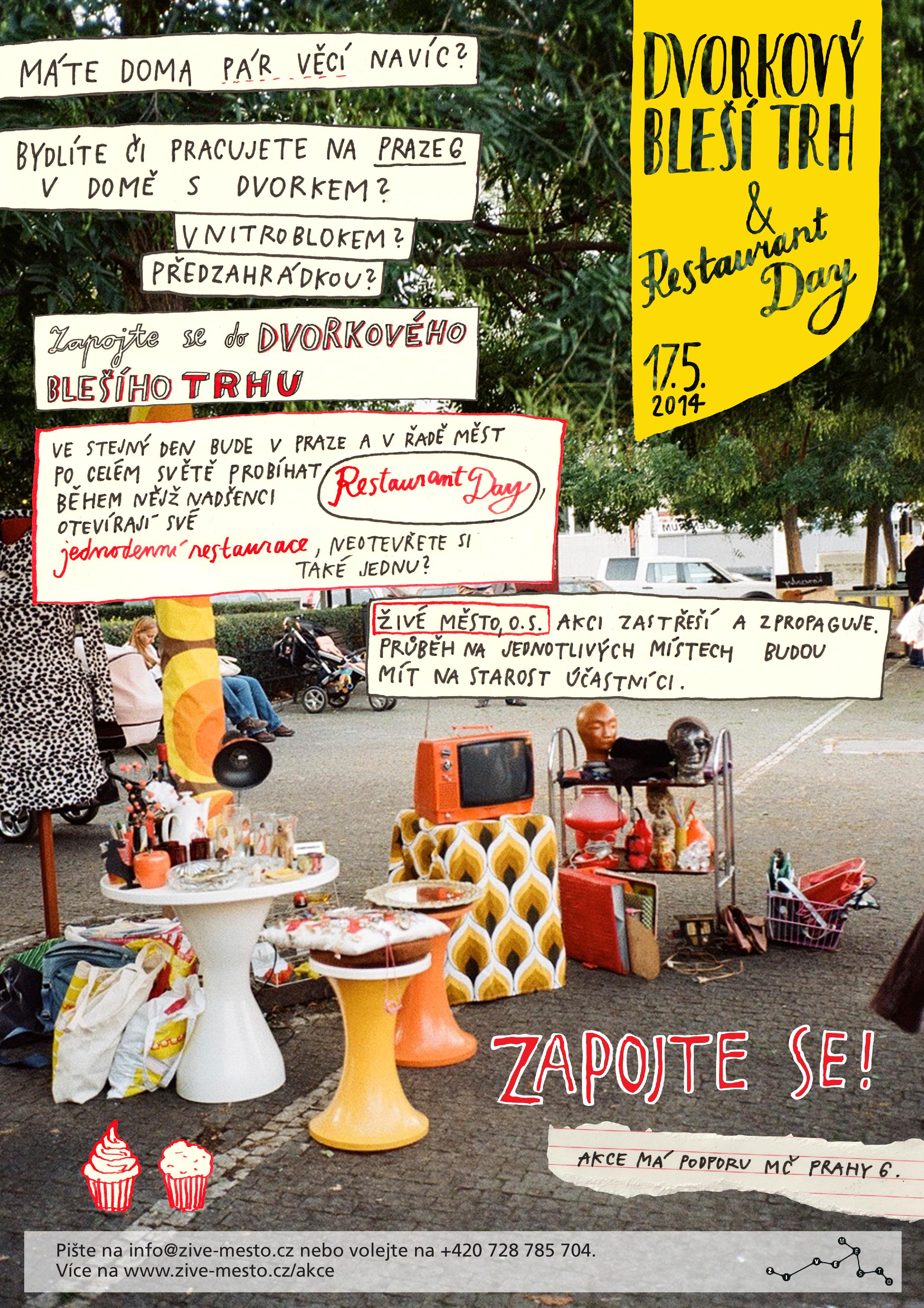 V sobotu 17. 5. 2014 o. s. Živé město koordinuje dvorkový bleší trh, který se uskuteční na různých místech Prahy 6 společně se sousedskou kulinářskou akcí Restaurant Day, během níž nadšenci po celém světě zakládají své "jednodenní restaurace". Zapojte se letos i Vy!