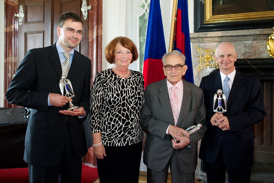 Na fotografii zleva: Kryštof Hilský, syn profesora Martina Hilského, Marie Kousalíková, starostka Prahy 6, profesor Otto Pick a profesor Jan Betka.