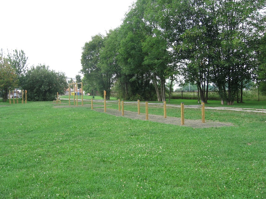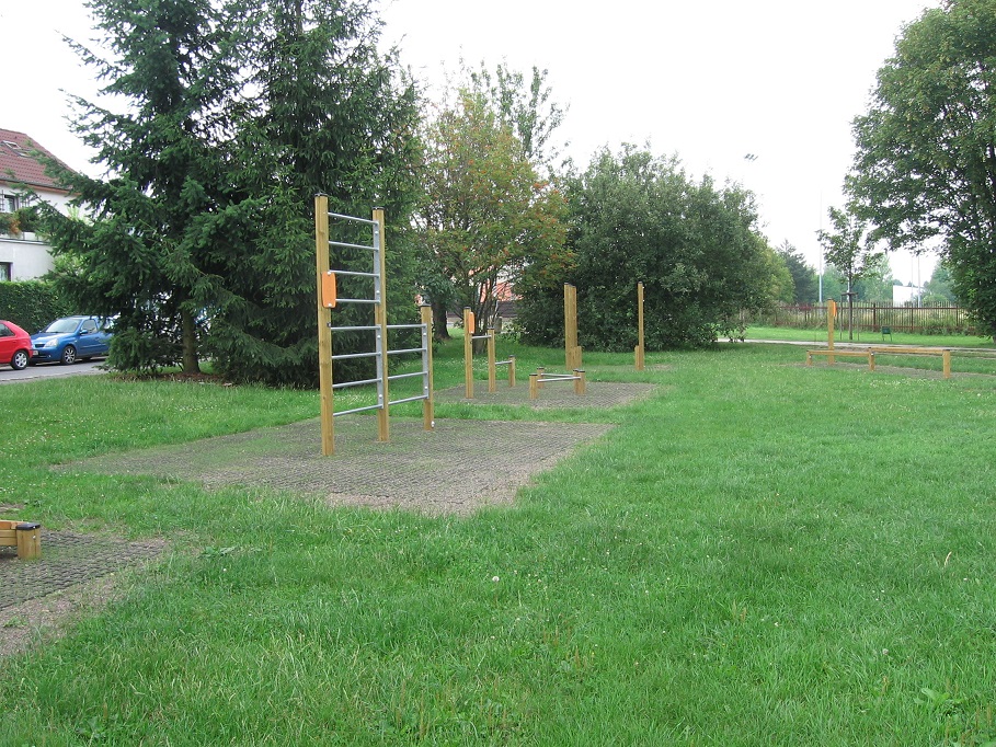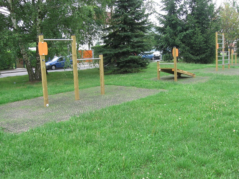 Kliky na nízké hrazdě, přitáhování na vysoké hrazdě. Ruce protáhnete ručkováním na žebříku. Balanční kladina prověří hbitost. Protáhnou vás stabilní chůdy a šplhací žebřík. Mrštnost vyzkoušíte na přeskocích a břicho můžete posilovat na speciální lavici. U každého fitness prvku je návod, jak na něm správně cvičit.