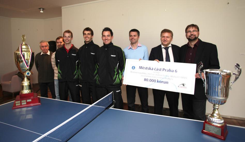 „Hráči klubu jsou už po osmé mistry České republiky. Klub má na Praze 6 svoji základnu v Dejvicích na Kotlářce a už několik let s klubem spolupracujeme. Chtěli jsme tímto způsobem ocenit jejich letošní výhru a tímto šekem jim přispět na koupi deseti nových profesionálních stolů,“ řekl Ondřej Balatka, radní Prahy 6 pro sport, volný čas a školství.